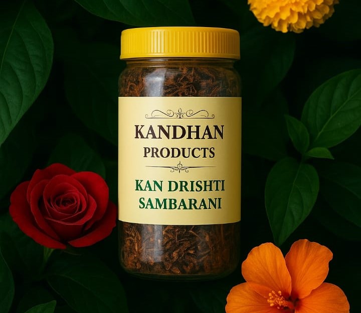 Kandhan Sambrani is prepared using high-quality resin, natural herbs, and aromatic bark to produce a rich, divine fragrance traditionally used in temples and homes. The smoke fills the space with a warm and calming aroma, ideal for spiritual and healing purposes.